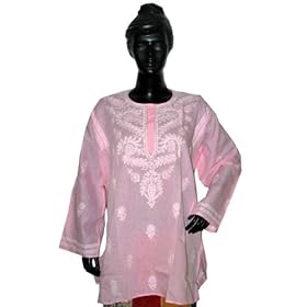 Click Here to see more reviews about: Kurtis for Womens-pink Cotton Kurti Coverup Clothing of India Casual Summer Spring Dresses Chikan Embroidery Size Xxxl
