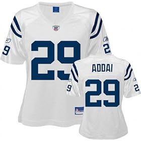 This durable, polyester dazzle Joseph Addai Indianapolis Colts Women's White Replica Jersey from Reebok is as tough as what men wear, but styled for a woman. Features screen printed team logos, numbers, and stripes.plus player name across back.