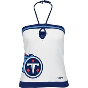 Wow! What a way to enjoy more of the summer sun and show your loyalty, too. It's the fitted Tennessee Titans Women's White/Navy Free Tu Be Top from Reebok. Features large, screen printed team logo on right side, plus heat sealed rhinestones around key hole at neckline.