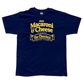 Who doesn't love Kraft Macaroni & Cheese? After all, it's the cheesiest! And now you can show your love for the tasty meal by wearing the navy blue cotton t-shirt with gold print.